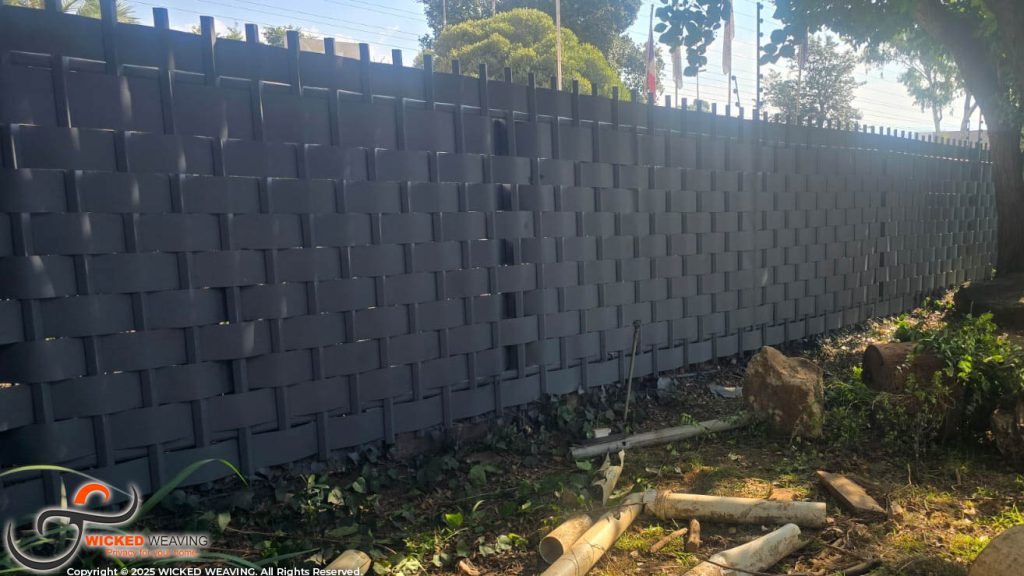 At Wicked Weaving, we’re dedicated to turning everyday fences into statement pieces that offer both style and strength. Our latest project at Bushlore in Midrand, is a testament to this mission: a stunning 96-meter palisade weaving and installation of palisade extensions, expertly finished in the ultra-modern Sleek Slate Grey.