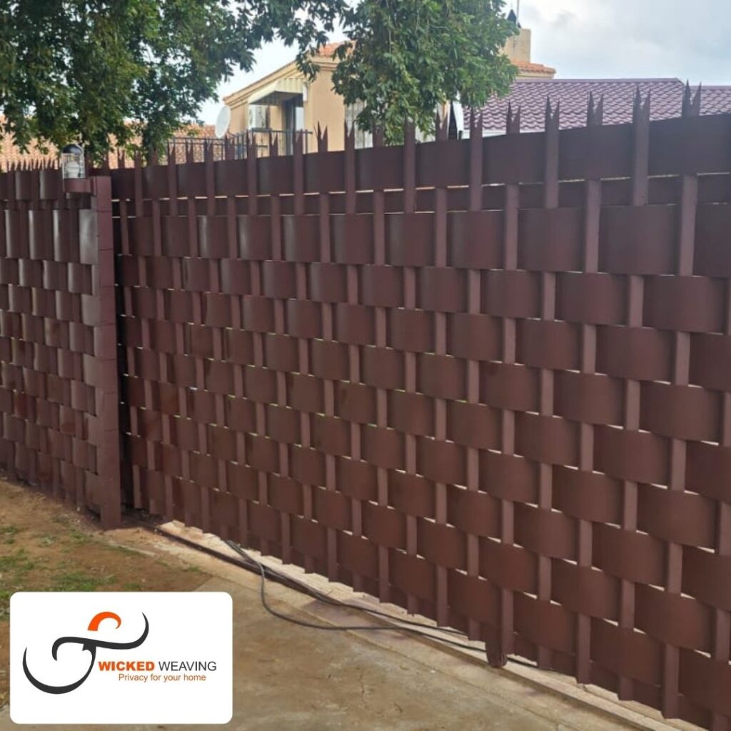 Wicked Weaving has completed another 26m palisade weaving installation in Meyerton! This rich chocolate finish adds a touch of elegance while ensuring top-tier security and durability. Upgrade your property with a fencing solution that’s both strong and stylish!
